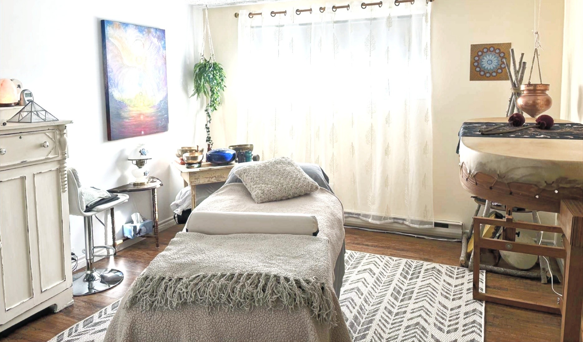 J’offre d’un éventail de services, j’ai un volet avec des séances énergétiques fait soit en personne ou à distance comme le reiki, le tianshi, le tambour unité, l’harmonisation atlante, le nettoyage des champs vibratoires, l’harmonisation des lieux à distance.