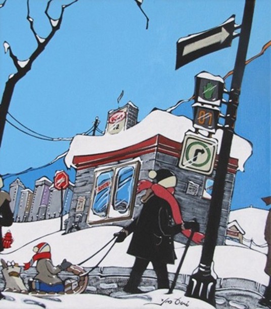 L’hiver est un élément important dans mon processus de création, me permettant de rajouter fantaisie au même titre que les couleurs franches, les perspectives distorsionnées et les angles recherchés.